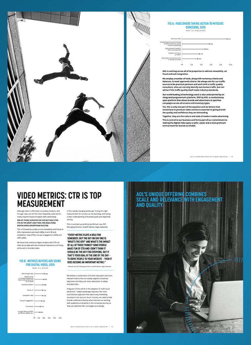 Develop a set of typographic, layout and data design rules for a new report format for AOL International. The final report design will be used as a template rollout for other divisions to produce local market-specific report variants.