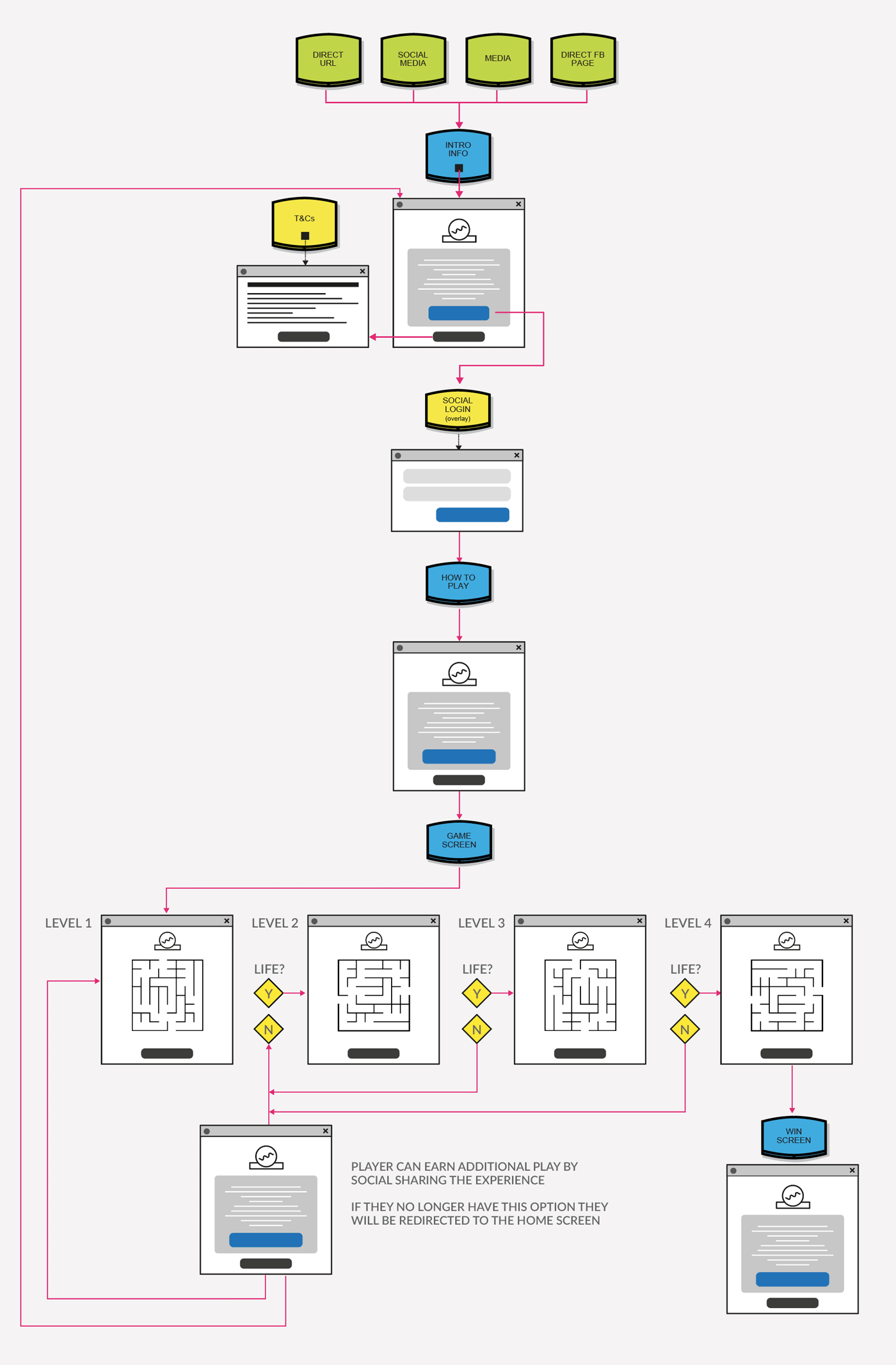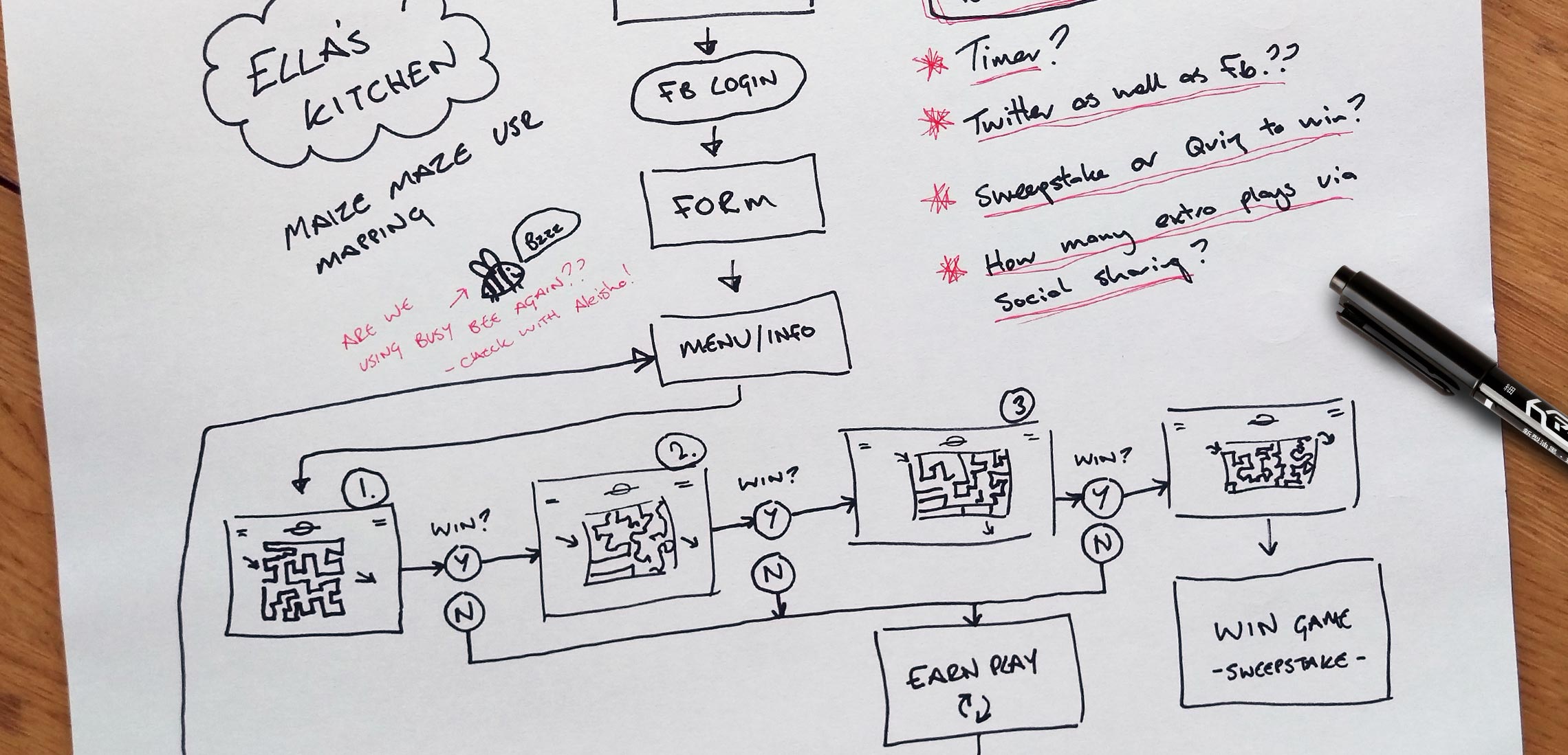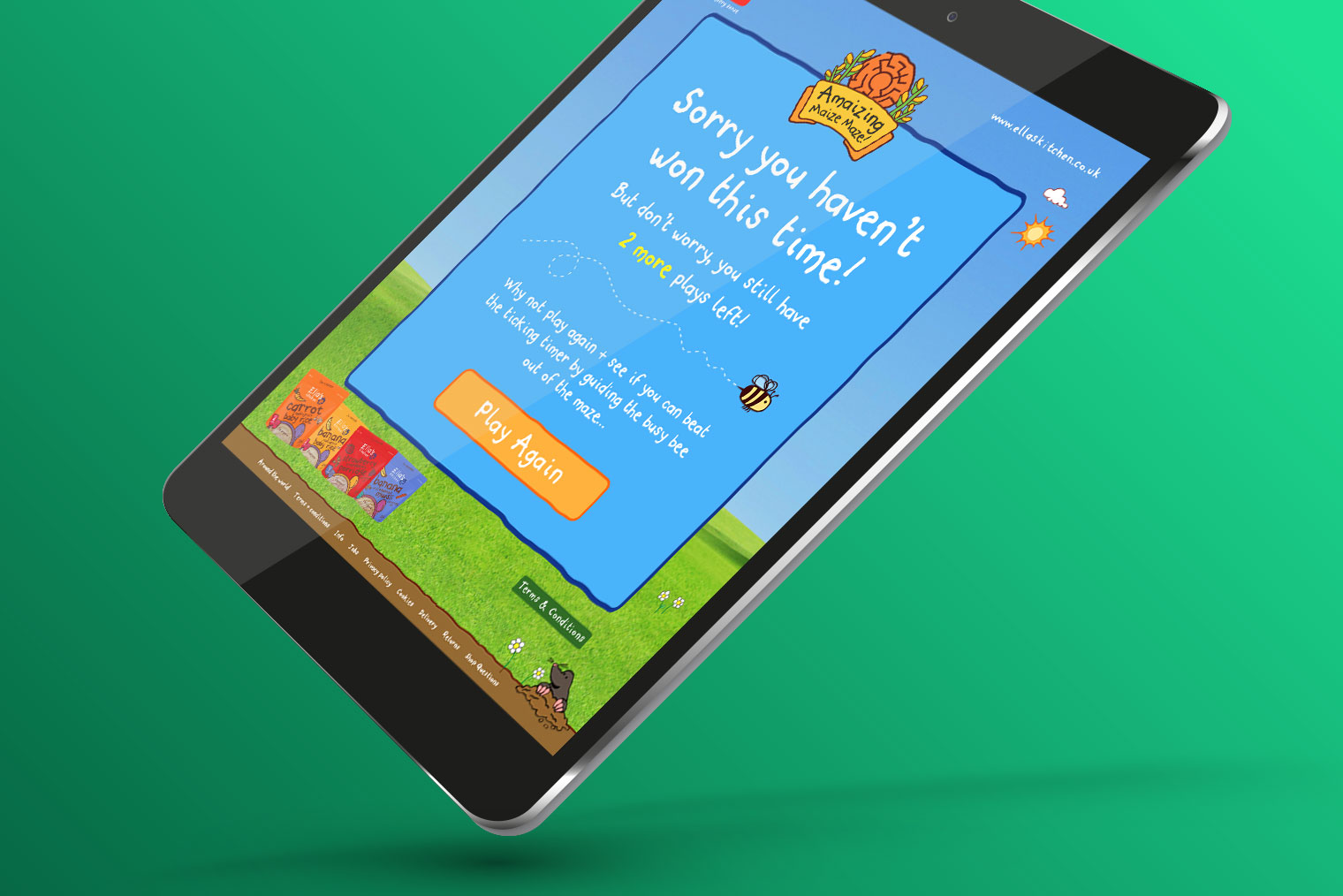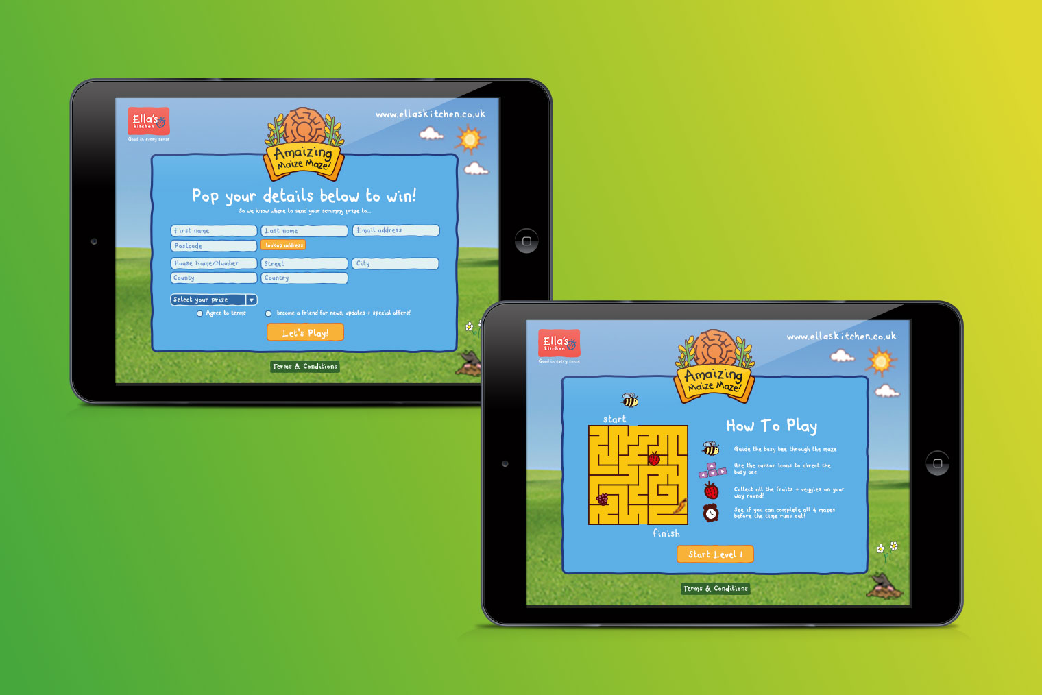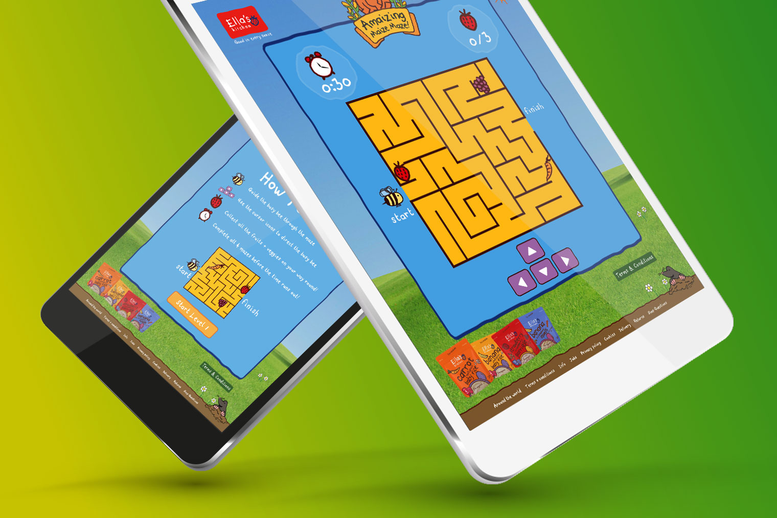 Key considerations in the design - promote the Ella’s brand identity, create a simple gameplay so even very young children can enjoy without the frustration of failure and offer repeat play with maze variety to encourage engagement and sharing