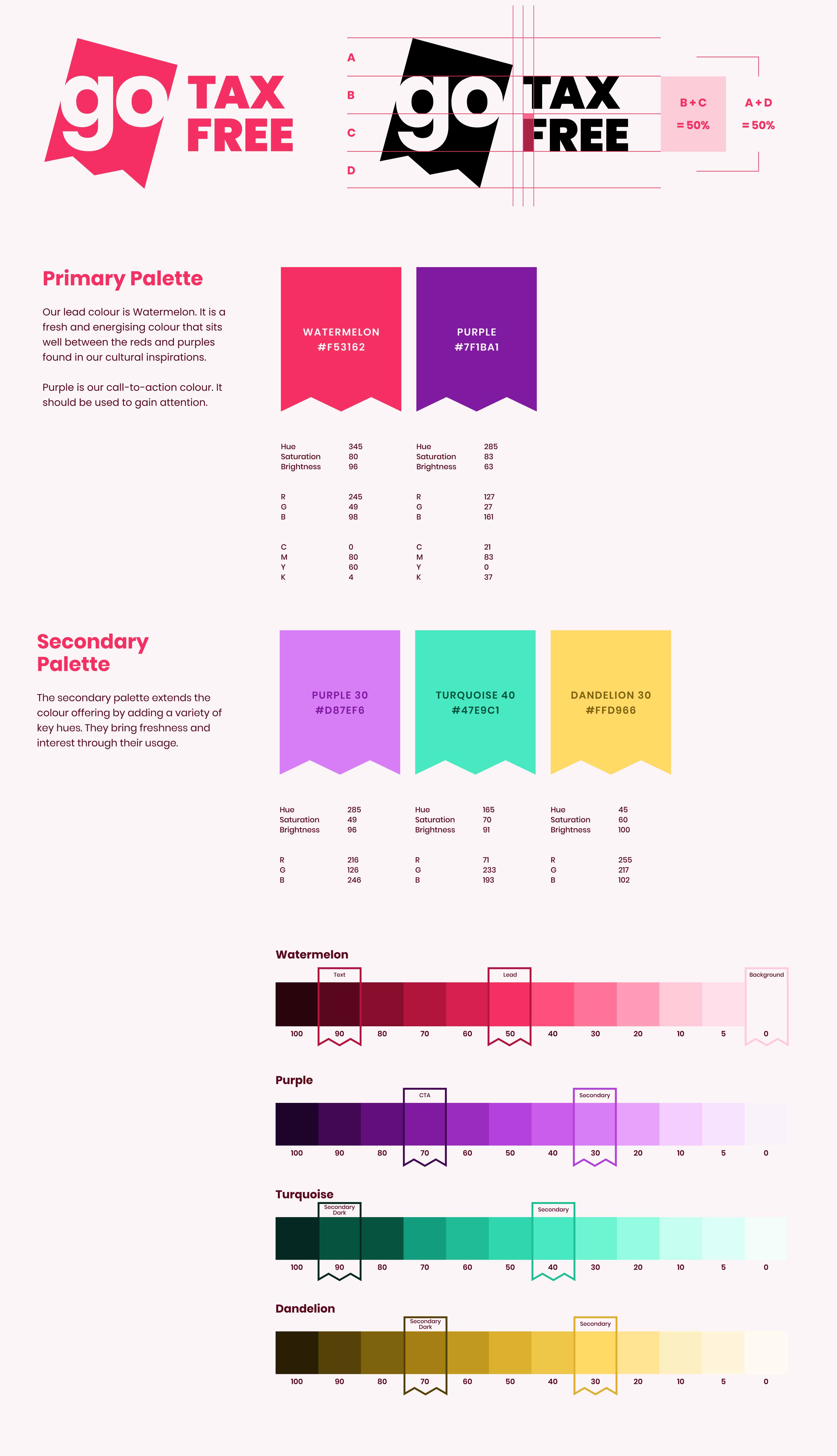 Creatively, the brand identity for Go Tax Free was built around assumed and researched factors; colours, imagery, tone of voice.