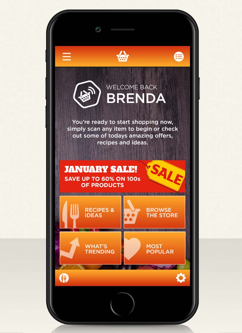 Develop a personalised NFC (near field communication) shopping app solution that offers promoted recipe and additional content to shoppers as they move through their contactless shopping journey in store.